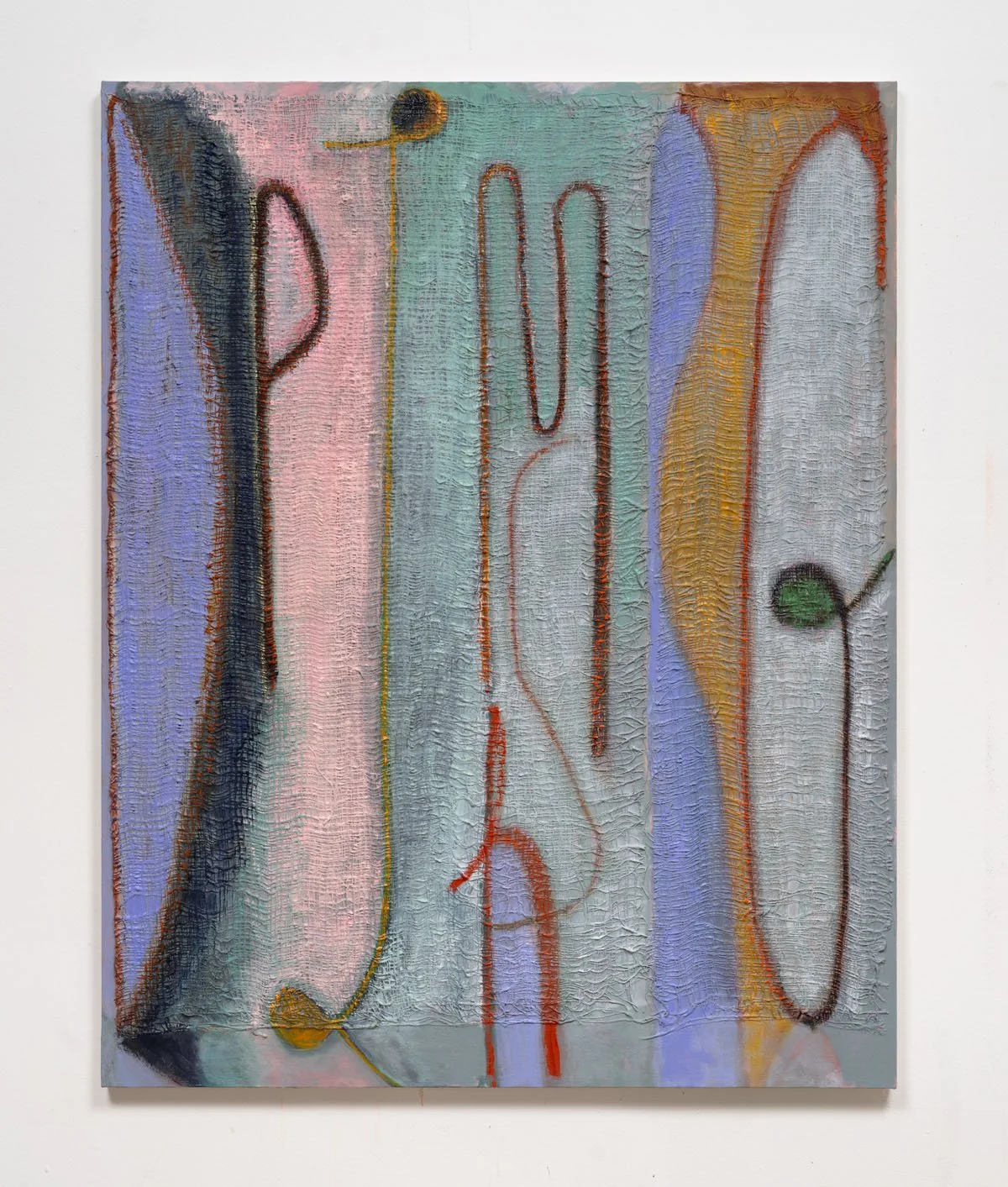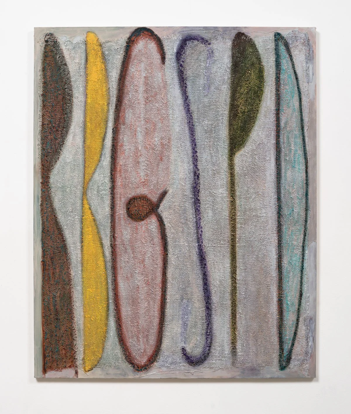 From top to bottom: Sigil 81: oil on burlap, 39” x 31”, 2024. Sigil 87: oil on burlap and canvas, 61” x 49.2”, 2024. Sigil 89: oil on burlap and canvas, 61” x 49.2”, 2024. Sigil 90: oil on burlap and canvas, 67” x 54”, 2025. Sigil 91: oil on burlap, 67.25” x 53.25”, 2025. Sigil 92: acrylic and oil on burlap, 48” x 40”, 2025. Sigil 93: oil on burlap and canvas, 67” x 53”, 2025. Sigil 94: oil on burlap and canvas, 67” x 53”, 2025.